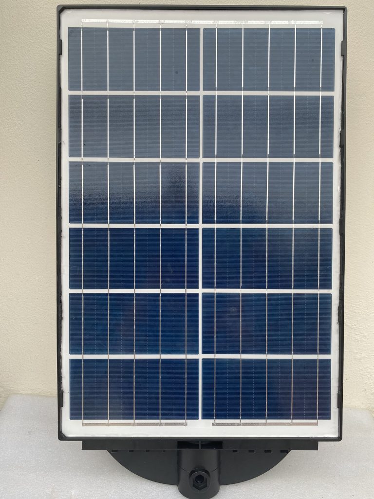 Điểm nổi bật của đèn liền thể 400W nằm ở tấm pin năng lượng mặt trời chất lượng cao, có khả năng hấp thụ ánh nắng tốt và chuyển hóa hiệu quả thành điện năng. Thiết kế tối ưu giúp đèn sạc nhanh vào ban ngày và tích trữ đủ năng lượng cho cả đêm dài.